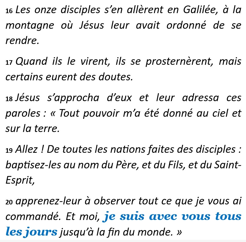 De l’Évangile de Matthieu, chapitre 28, verset 20 :